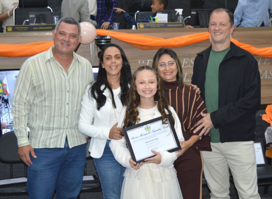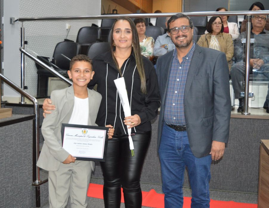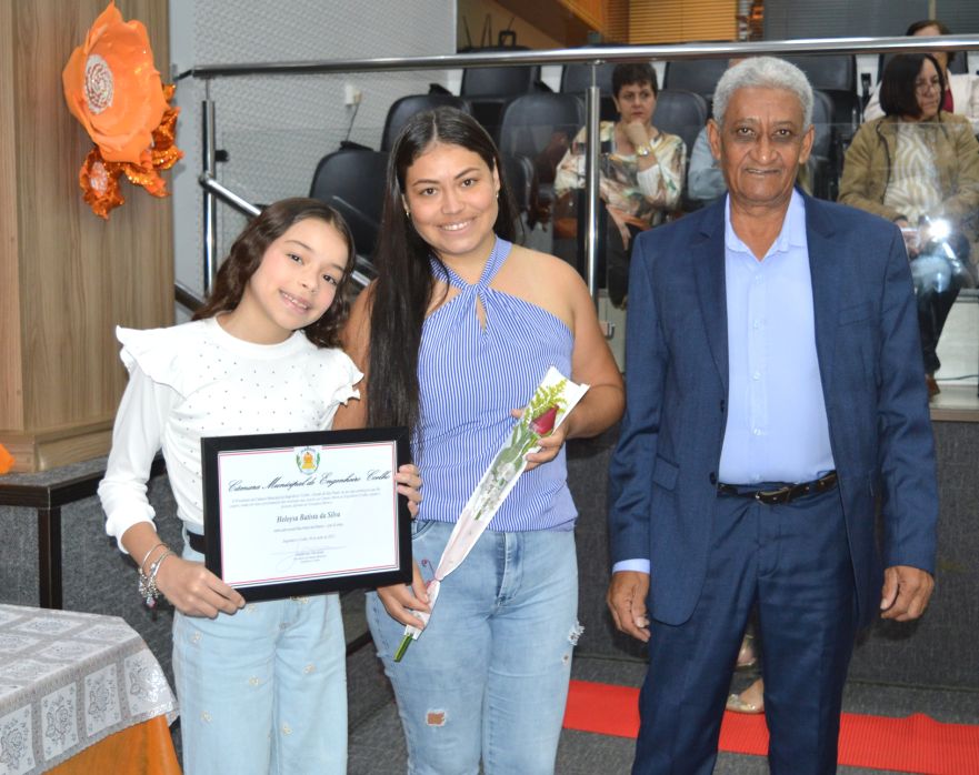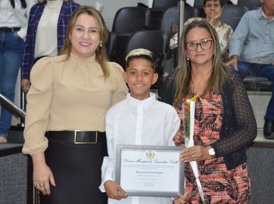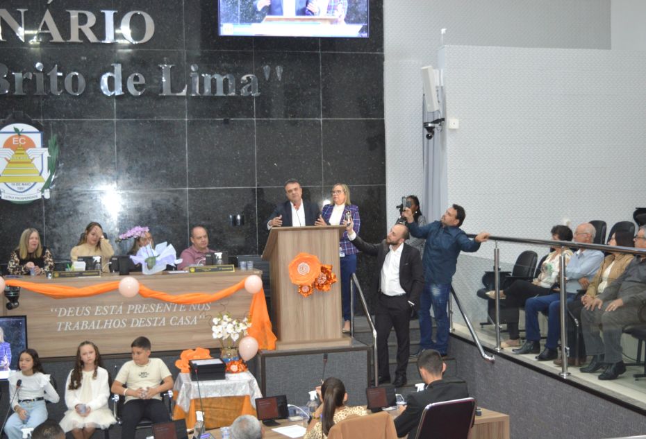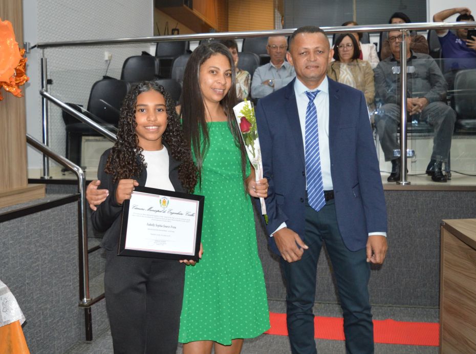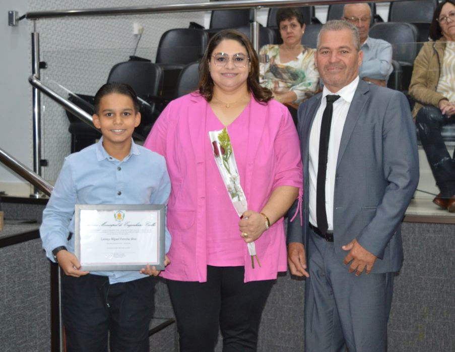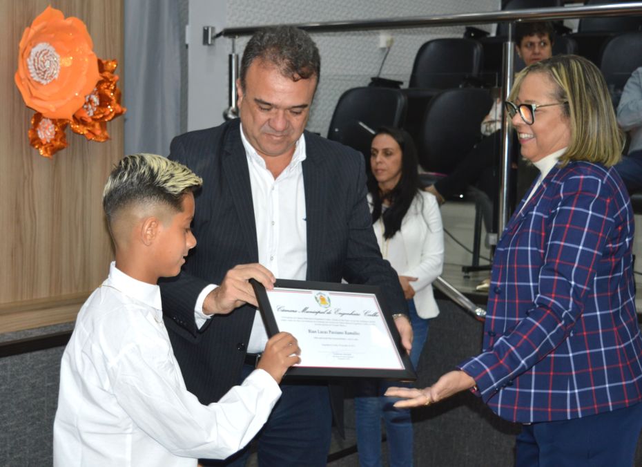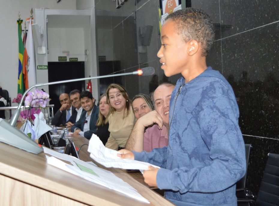 O jovem Lucas Rodrigues Brito, da Escola Mariza Franco, que foi o vereador eleito com o maior número de votos, usou a tribuna e agradeceu a todos, na ocasião, a presidente eleita também falou com categoria aos presentes.