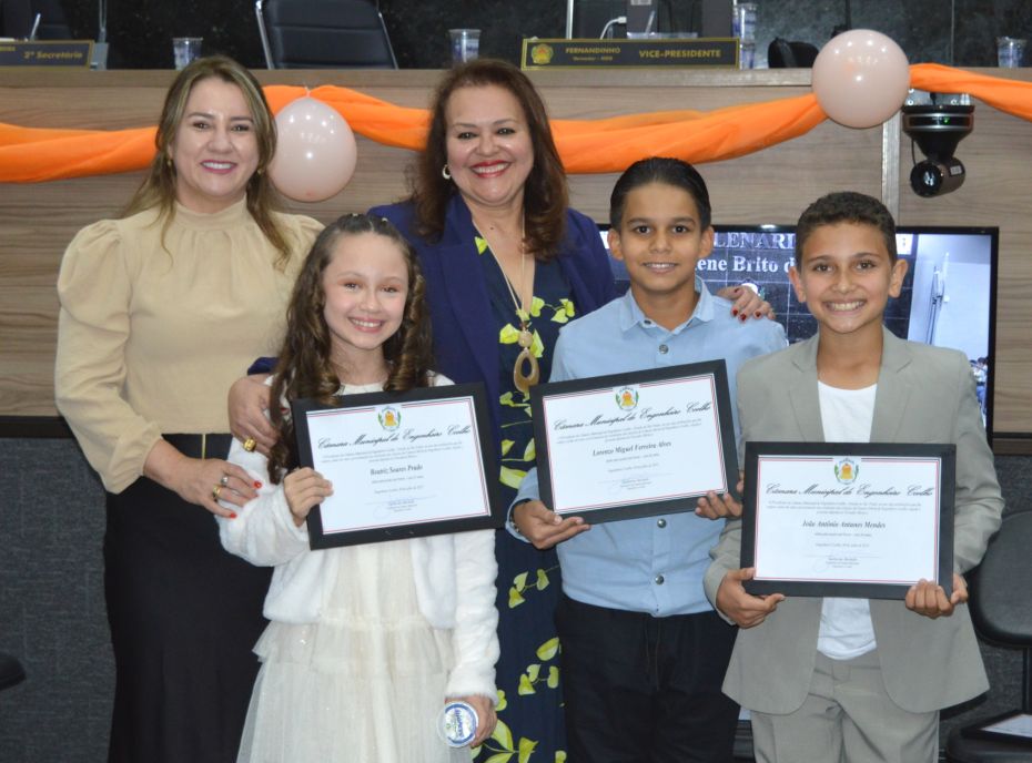 Para a surpresa dos presentes, a mesa diretora será conduzida por uma garota, a jovem Heloysa Batista, da Escola Elisa Franco. A composição ficou muito bem equilibrada, com duas meninas e dois meninos, da seguinte forma: Presidente Heloysa Batista, da Escola Eliza Franco, Vice-Presidente Gabriel da Silva Neves, da Escola Eliza Franco, 1º Secretária Polianny Ladeia Mendes, da Escola Mariza Franco e 2º Secretário Arthur Abreu Araújo da Escola Mariza Franco.